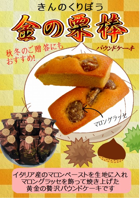 栗の豊かな風味が口いっぱいに広がる、しっとり贅沢なパウンドケーキです。